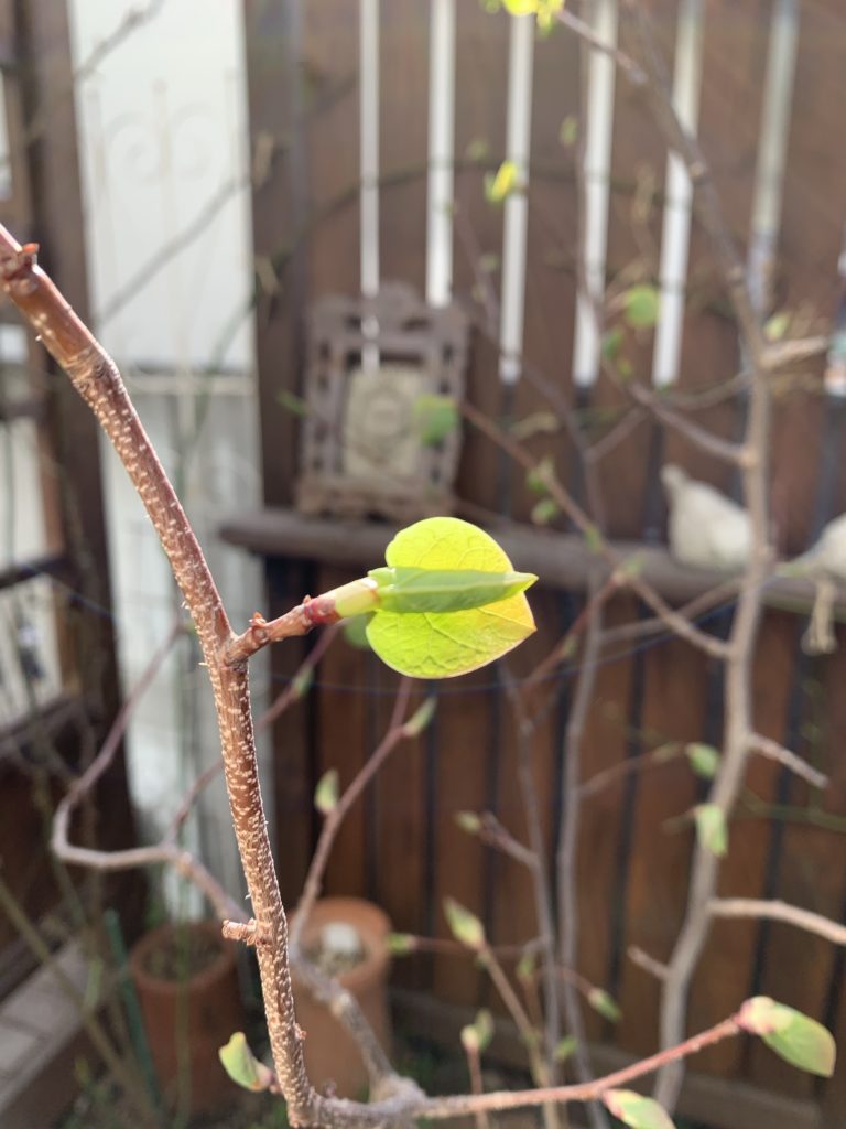 今朝は穏やかな陽射しで、マルバの木が芽吹いてきました🥰