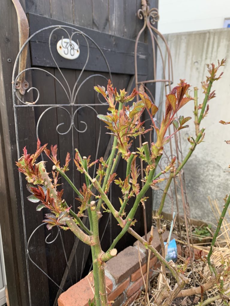 ↑バラの芽もグングンのびてきました。これはノヴァーリス。丈夫な青バラですごくおすすめです😁