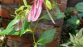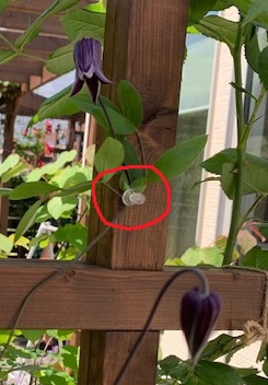 つぼみもかわいいですね。クレマチスの誘引には画びょうを使うとラクです。