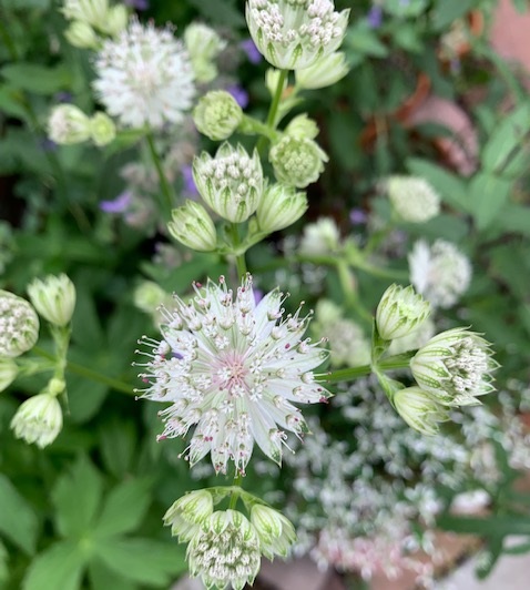 今朝 庭パトロールをしていたら、いちばんお気に入りのアストランティアが開花していました♡