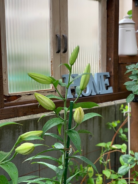 ユリが雨粒の重さで折れてしまっていました( ;∀;) もうすぐで咲きそうだったのに。つぼみも重かったのでしょう。。。