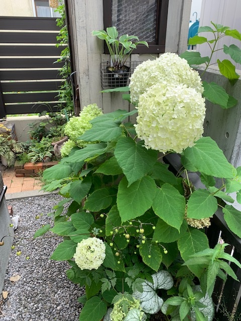 今年はかなり大きくなった アジサイ'アナベル'♡