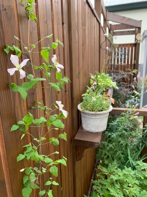 このクレマチスは東側のフェンスエリアに植えています。