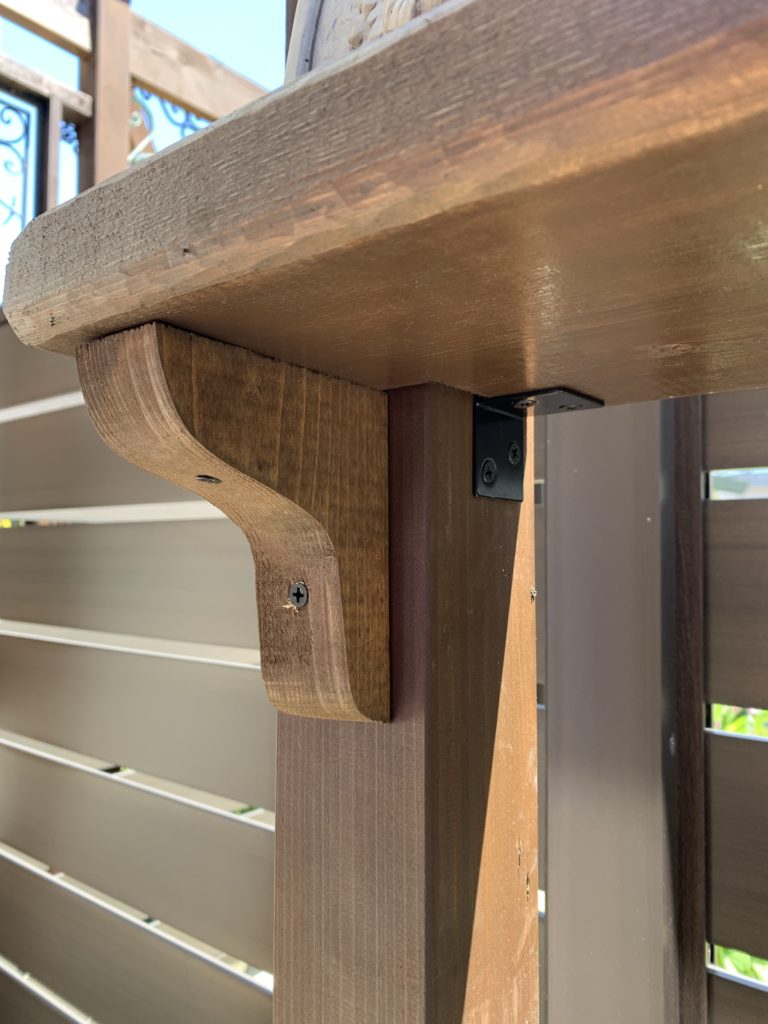 木製棚うけはお手製。ジグソーに曲線用のブレードをつけてカットしました。
