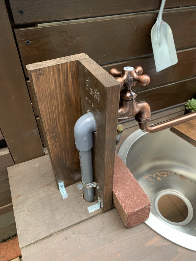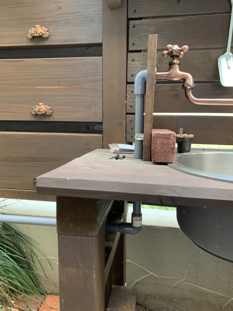 立水栓の蛇口をひねると、ちゃんとシンクの蛇口から水が出ましたよ♪