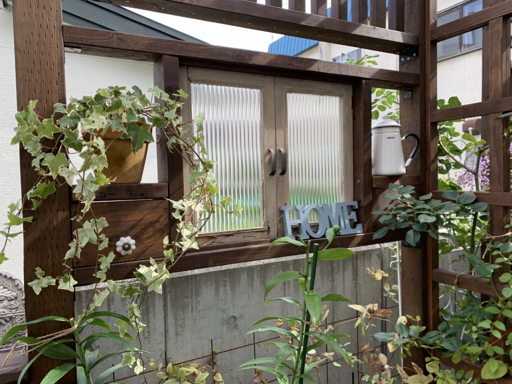寄せ植えから救出したヘデラを単独植えして、窓のとなりに置いてみた♪