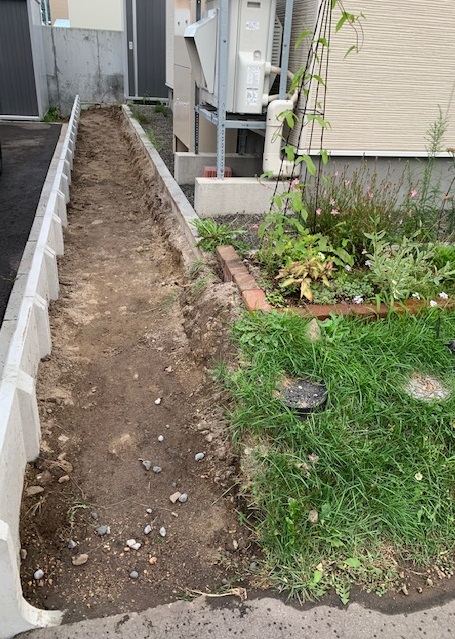 束石の撤去後、古い土を新しい土と入れ替えてもらいました。