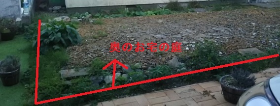 ガレージの奥は、奥のお宅との境界線に何もなく、庭が続いたような感じになってしまっていました。