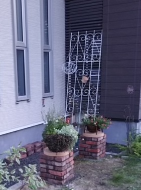 ●玄関の東側スペースにレンガの花台をDIY