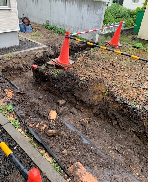 2019年、ガレージ奥のフェンスを作るのと一緒に、土留め工事もしてもらいました。